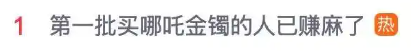 与此同时,哪吒最贵周边“乾坤圈”金手镯开始爆火出圈,