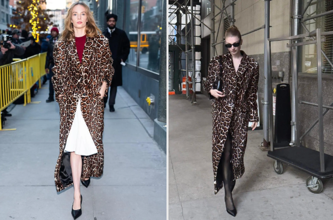 则用Prada的豹纹大衣搭配出完美的气场。