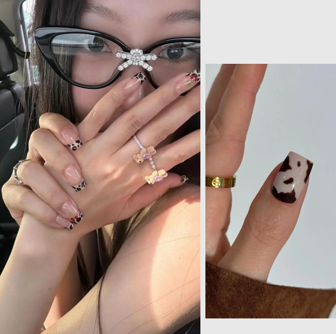 甚至可以尝试动物纹美甲,不经意间露出,