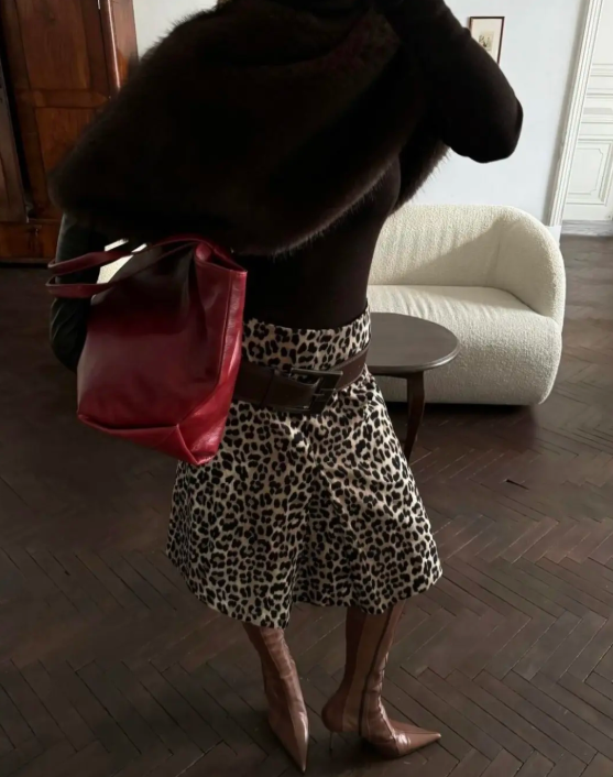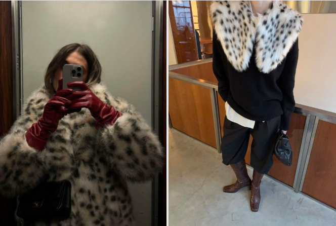 皮草材质的动物纹包包自带暖感,适配冬日大衣;