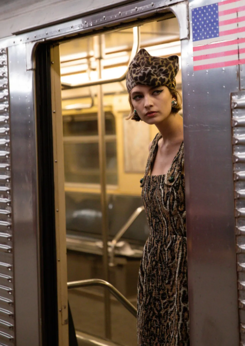 在纽约地铁站主题的秀场背景下,